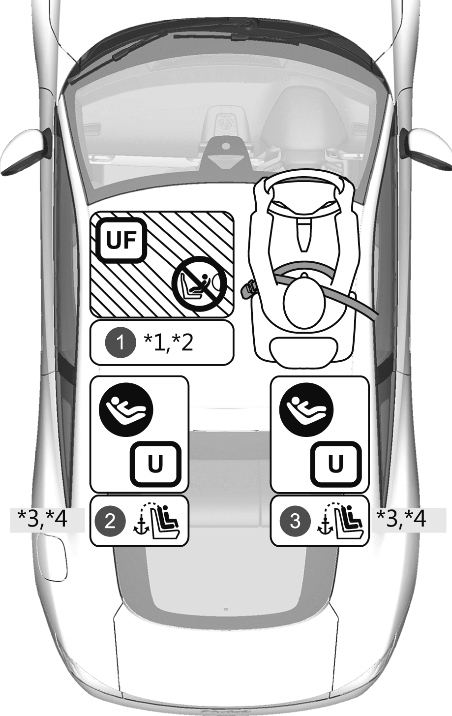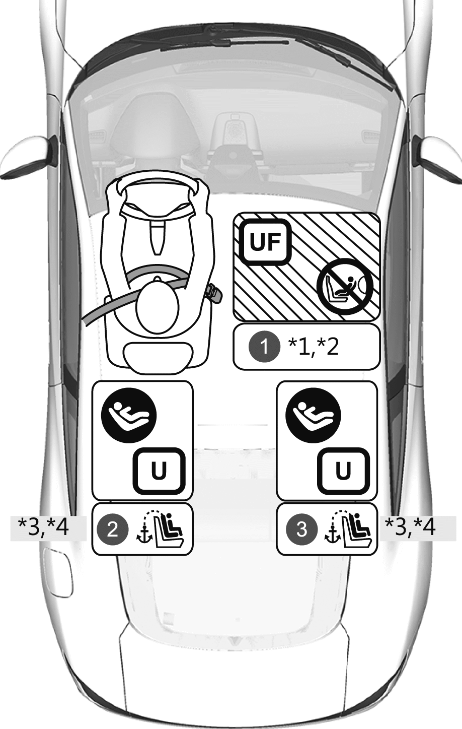 *3: When installing a child restraint system in the rear seat, adjust the front seats so that the child or child restraint system does not contact with the front seats.