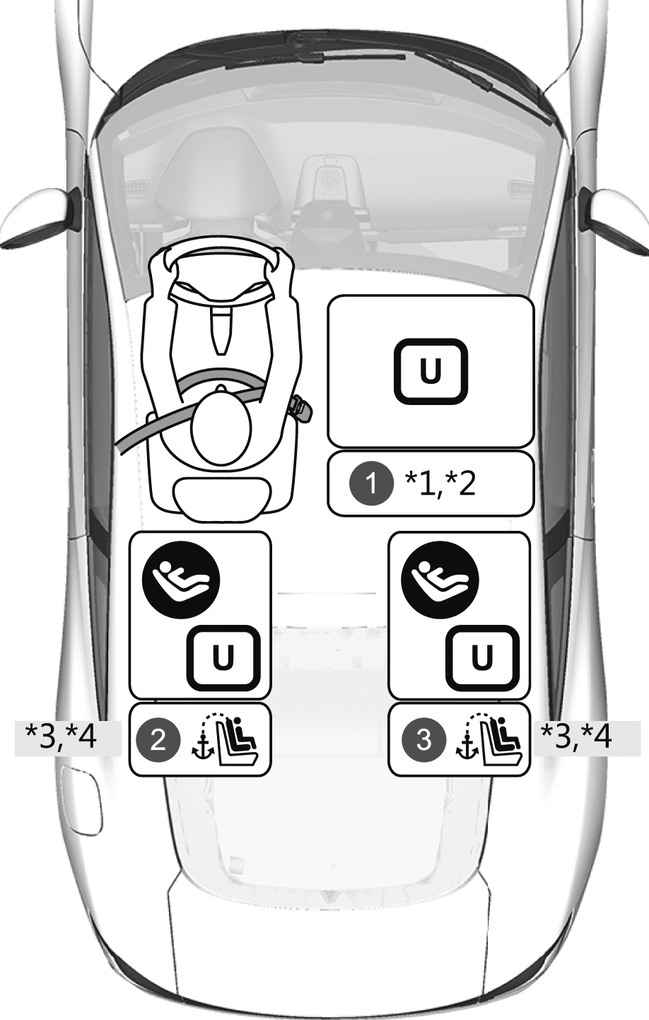 *4: When installing a child restraint system using with ISOFIX (lower anchorage connector), the seat belt cannot be used.