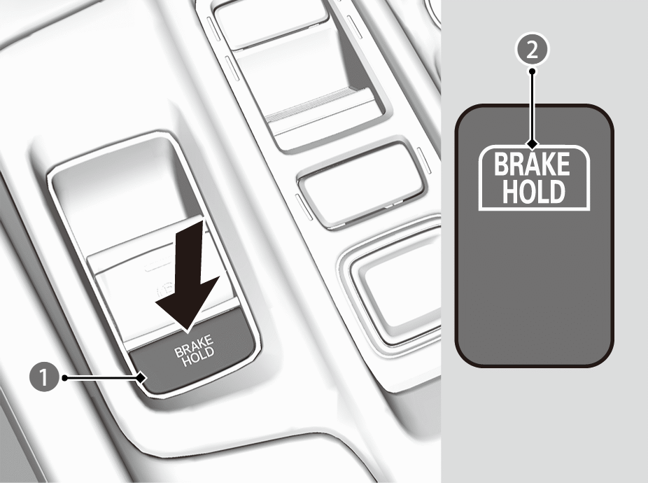 Keeps the brake applied after releasing the brake pedal until the accelerator pedal is pressed. You can use this system while the vehicle is temporarily stopped, like at traffic lights and in heavy traffic.
