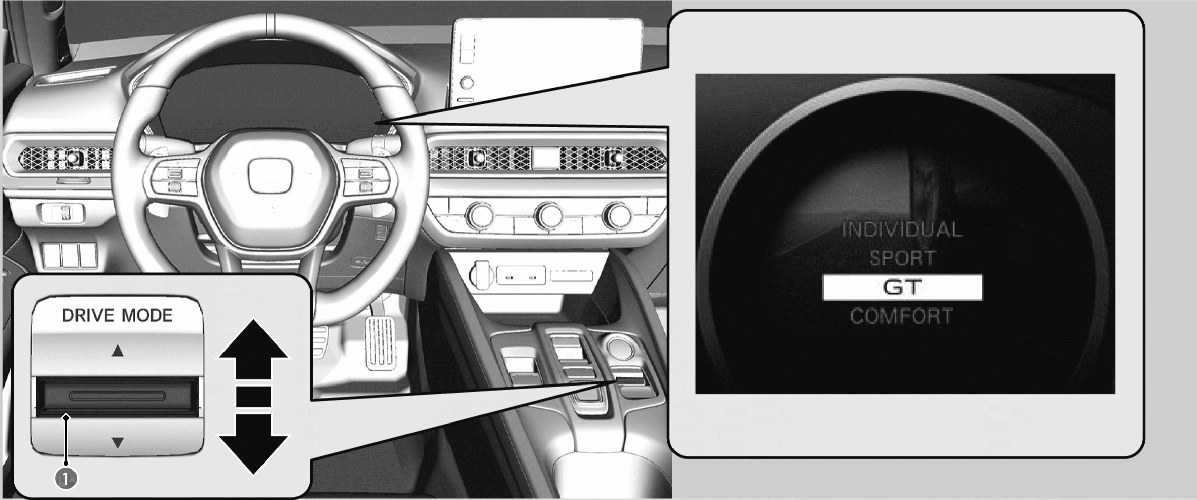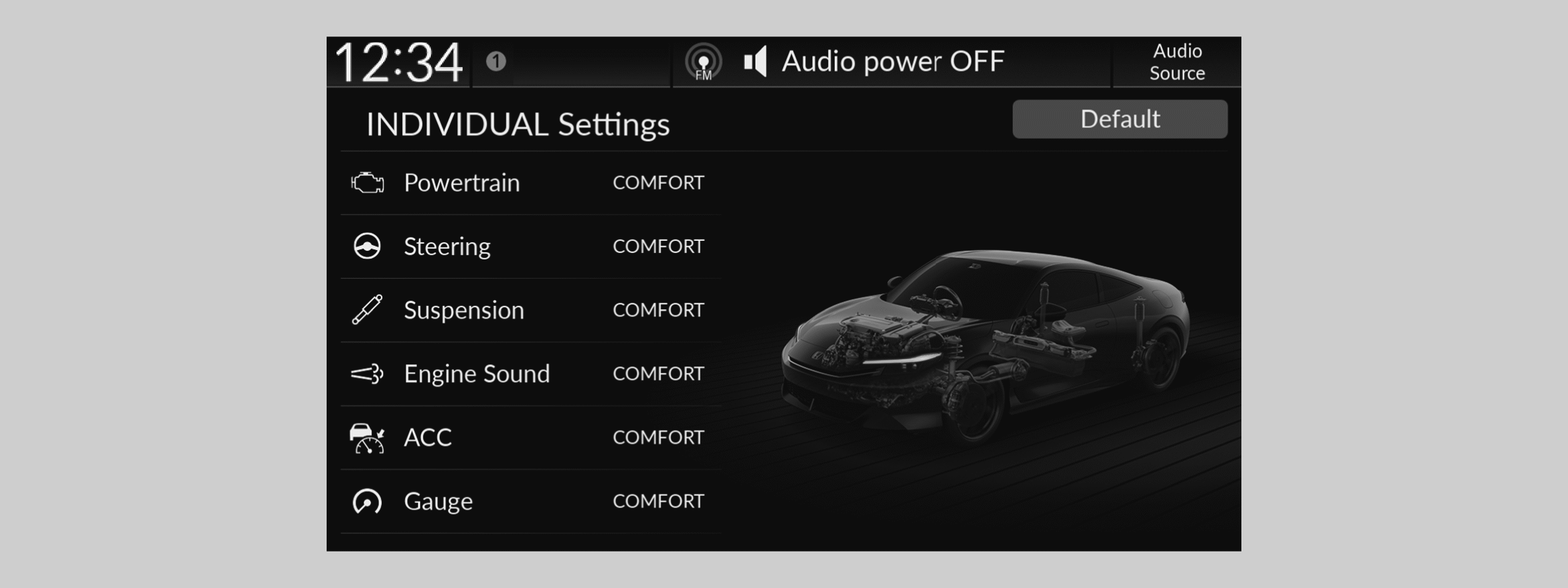 - Press the DRIVE MODE switch up and hold or select Customize to open the INDIVIDUAL Settings.