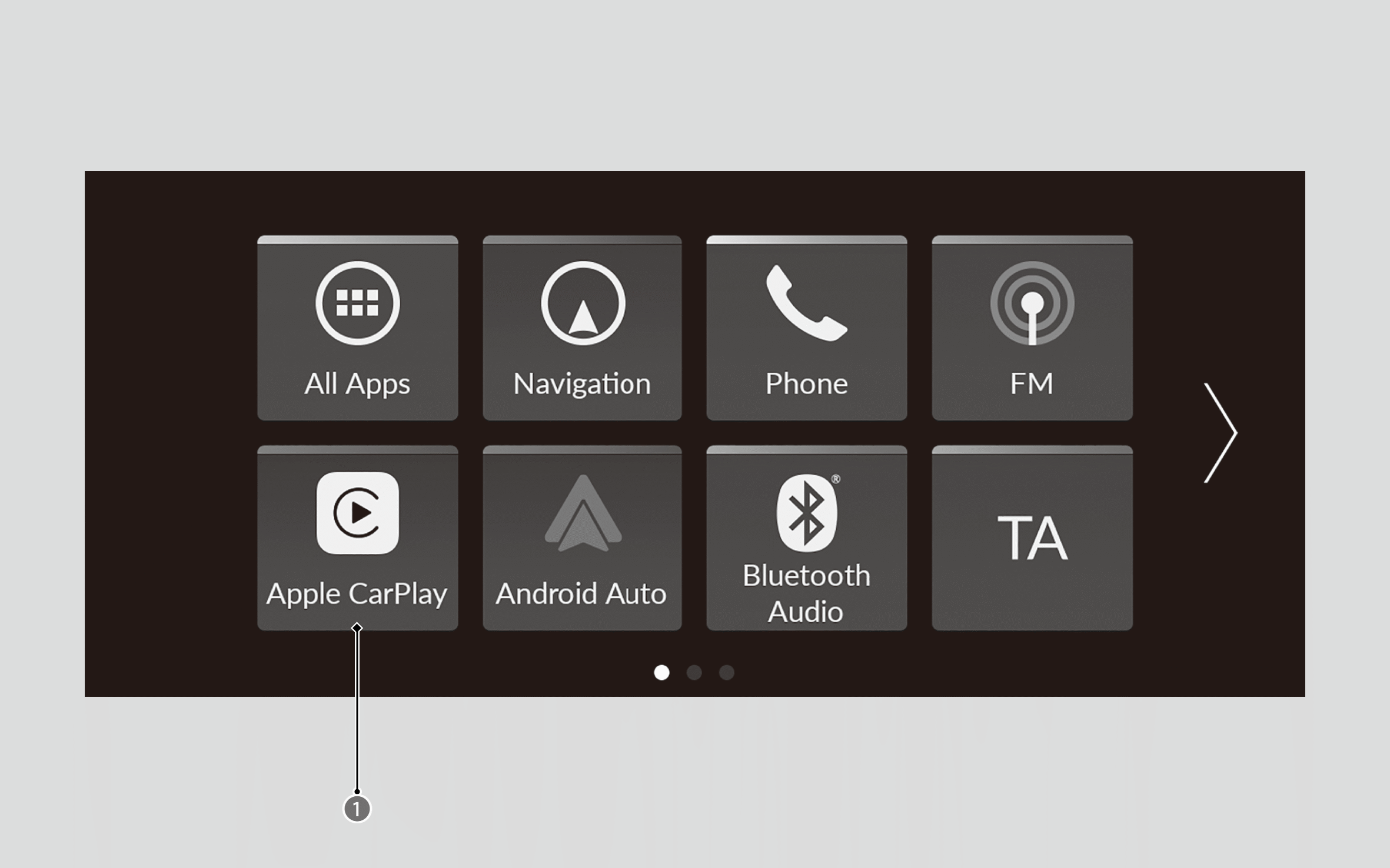 If you connect an Apple CarPlay-compatible iPhone to the system via USB charging/connector port or wirelessly, and the Apple CarPlay icon is selected, you can operate Apple CarPlay on the audio/information screen.